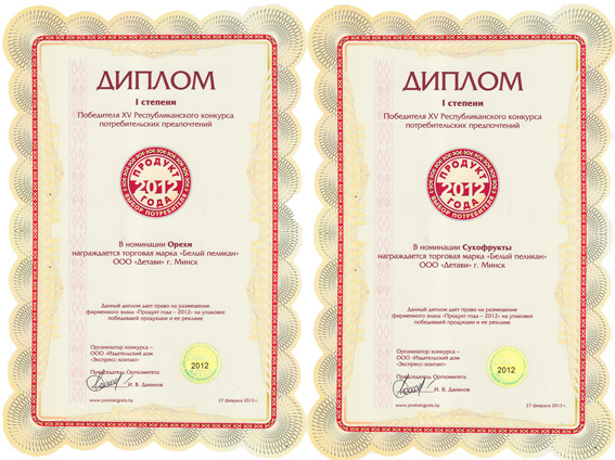 ТМ «Белый пеликан» - победитель Республиканского конкурса «Продукт года - 2012»